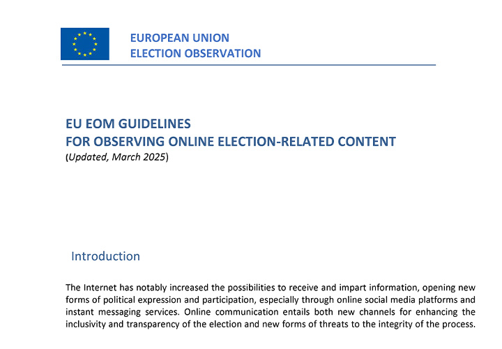 Online campaigning is increasingly important worldwide, as citizens rely more on digital channels for electoral information and candidates use them to reach voters. These channels include online news outlets, party and candidate websites, and, above all, online media platforms, now a major source of election news. For this reason, social media monitoring has become an essential part of election observation.